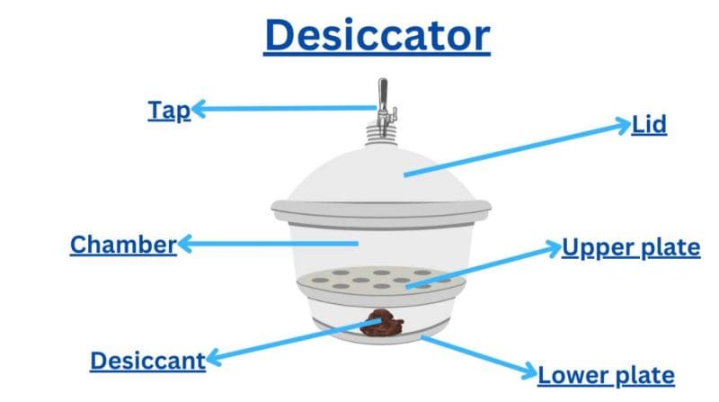 Here is a labeled diagram of a classic desiccator setup: